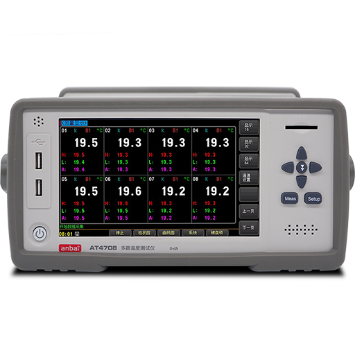 AT47系列(AT4708,AT4716,AT4724,AT4732,AT4740,AT4748,AT4756,AT4764)多路溫度測試儀采用高性能ARM微處理器控制,7英寸彩色液晶屏顯示,觸摸屏操作,方便查看溫度值,溫度變化曲線,柱狀圖等,可同時對多路溫度數據進行采集,上超下超報警和通訊傳輸,AT47系列可采集64路溫度數據,兼容K/N/E/J/T/R/S/B型熱電偶,響應速度快,數據穩定,同時具備斷偶檢測功能。每通道可單獨設置,獨立校正。