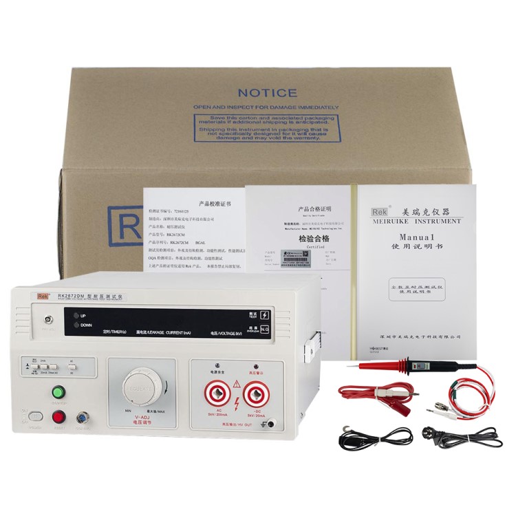 美瑞克RK2672系列耐壓測試儀是測量耐壓強度的儀器,可以直觀、準確、快速地測試各種被測對象的擊穿電壓、漏電流等電氣安全性能指標,并可以作為高壓源用來測試元器件和整機性能。