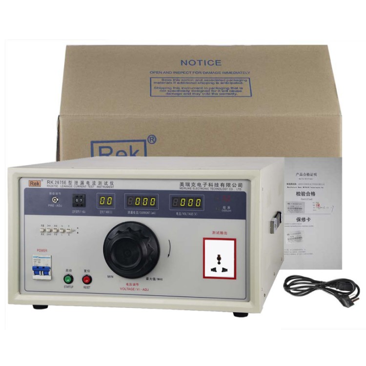 RK2675系列泄漏電流測試儀用于測量電器的工作電源(或其他電源)通過絕緣或分布參數(shù)阻抗產(chǎn)生的與工作無關(guān)的泄漏電流是衡量電器絕緣性好壞以及產(chǎn)品安全性能的檢測實驗設(shè)備。