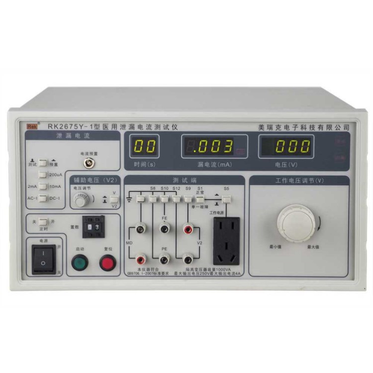 RK2675Y系列醫(yī)用泄漏電流測試儀用于測量醫(yī)用電氣設備的連續(xù)漏電流和患者輔助電流的檢測試驗設備。